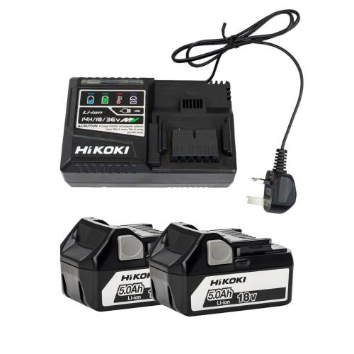 HiKOKI UC18YSL3JGZ 18v Starter Pack Inc 1x UC18YSL3 Battery Charger & 2x 5.0Ah Sliding Batteries