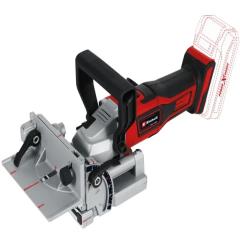 The Einhell TE-BJ 18 Li-Solo Power X-Change Biscuit Jointer is suitable for all commercially available flat dowel sizes up to type 20. Its solid aluminium design allows precise groove milling. The flexible assistant scores highly with infinitely variable alignment options both for height adjustment and for angle adjustment up to 90°. Milling depth can be adjusted using the 6-stage quick adjustment. A spindle lock ensures a simple and quick milling cutter change.